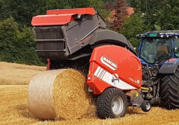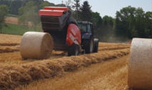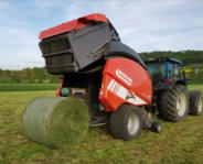 Rotorzuführung Maschi o R undba llenpress en sind gek e nnzeichn et d urch ih re ho he D ur chsa tzl eistung. Der Rotor sp eis t die Presskamme r kon tinuierl ich mit h ohe r V orschu b r at e auch be i g ro ssen Meng en Silage, Heu o de r Stroh . Der Roto r mit seine r V Zinken Spirale verteilt da s P ro d ukt gleich ssig au f di e Kammer . Bei de n A u sfü hrungen mi t Schneidwerk zieht der R otor das E rntegu t saub e r durch die Sch neidmes s e r .