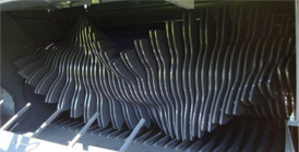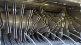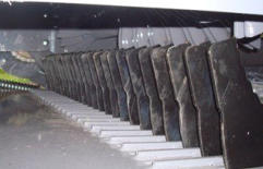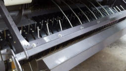 S chneidwe rk Dank d e r Fe de rvorspa nnung, könn en di e einze ln gesicherten Messer den Fremdkörpern ausweichen. Die da von n icht be troff e ne n Messe r sch n e id e n wei te r saub er und zuverl ässig das E rnteg u t u nd gew ährleisten so e ine einwa ndfreie F utterqu a lität . Di e Messe r könn e n hy drau li sch vom Sch lep pe r a u s ein- un d a us ges ch wenkt werden , be i de m HTU Sch neidwerk mit 25 Mess e rn is t serie nmässi g eine Me ssergrupp enschal tun g 0/12/13/25 V e r baut , d ie verschie dene Schnittlän gen e rmöglichen. Die Schni ttlän ge kann zwi schen 45 und 90 mm ein gest ellt werde n. D er Bediener kann die Messergruppen leicht über die F Bus Bed ienun g in der Trakto rkab ine wählen . Optional si nd Blindmes s er e rhältlich .
