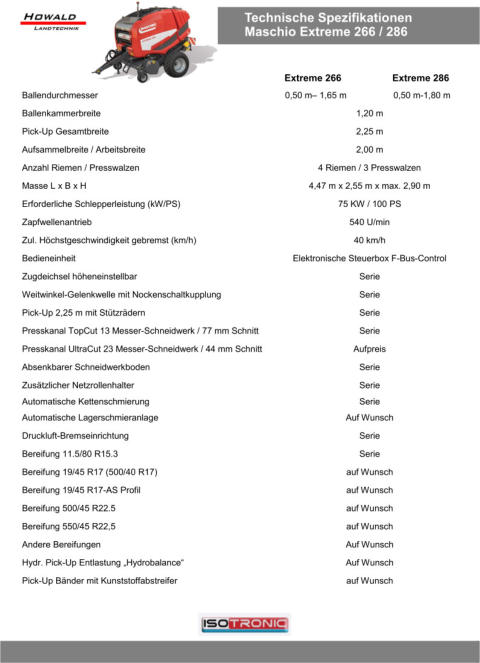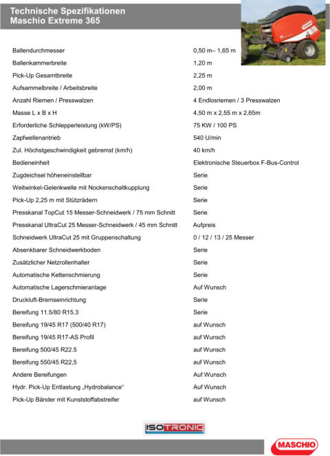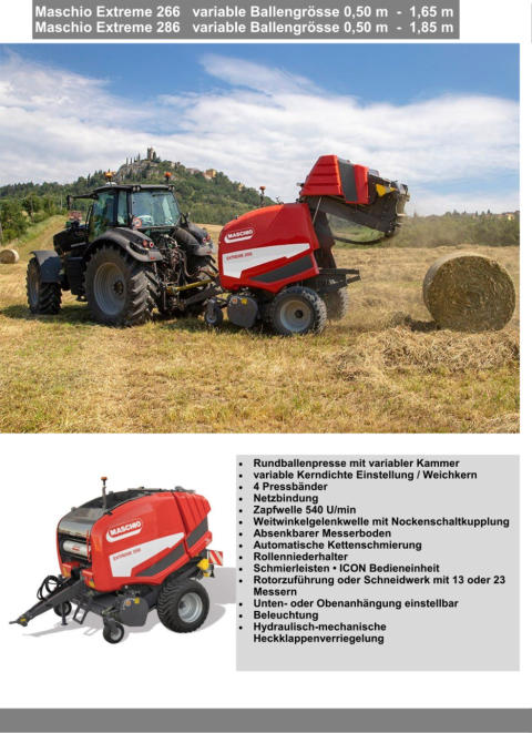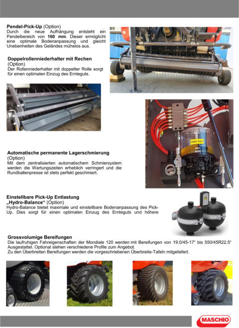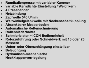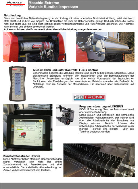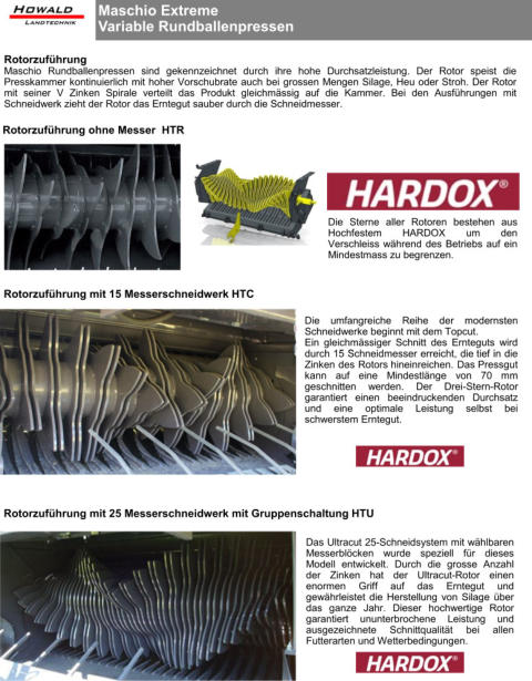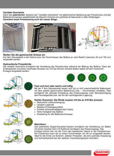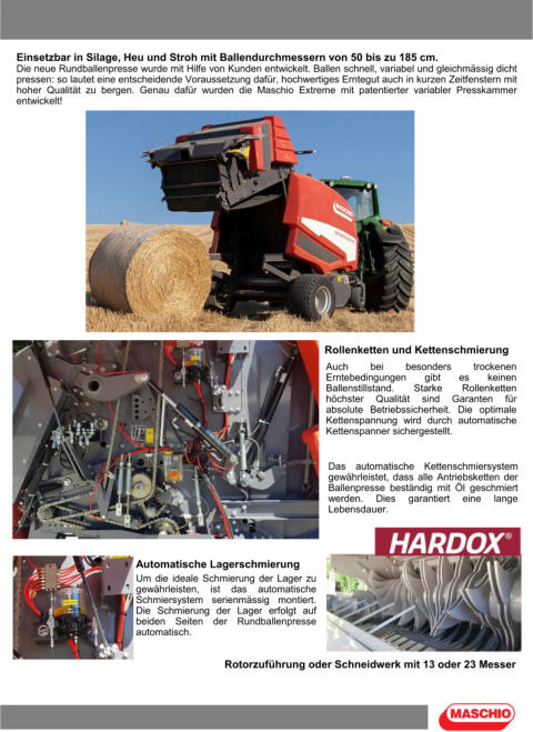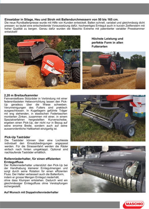 Einsetzbar in Silage, Heu und Stroh mit Ballendurchmessern von 50 bis 165 cm.